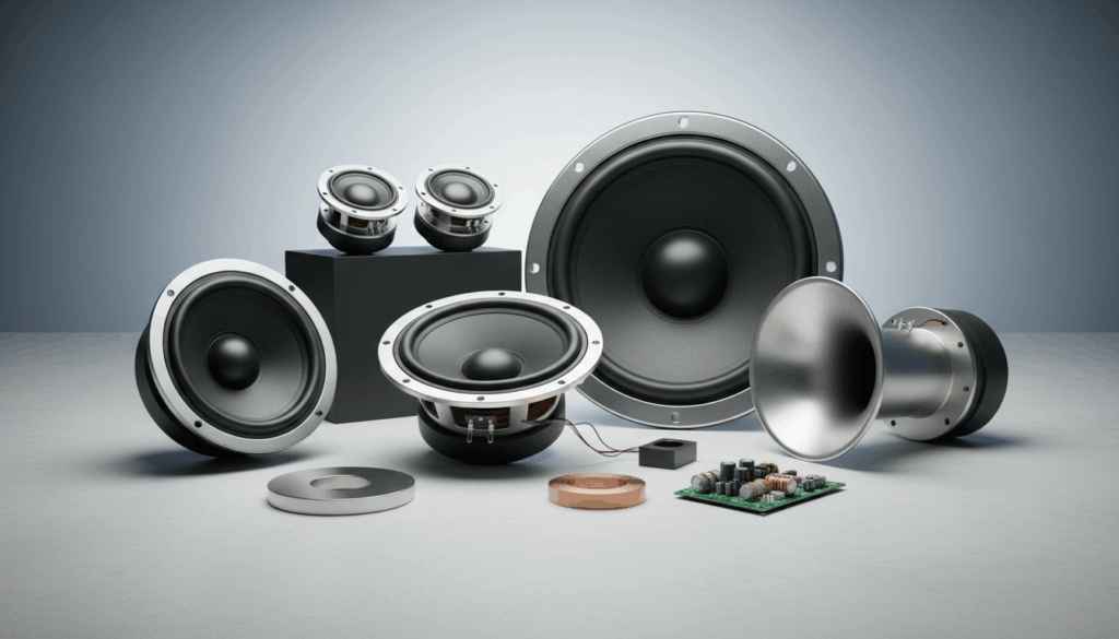 Nøgleparametre ved valg er impedans (typisk 4–8 ohm), effekt (RMS), følsomhed og frekvensområde samt enhedens pasform i kabinet og monteringsmiljø. Koaksial- og to-vejs/tre-vejs konfigurationer giver forskellig lydkarakter, mens horn og compression drivers ofte giver højere SPL og præcis diskant til liveoptrædener.