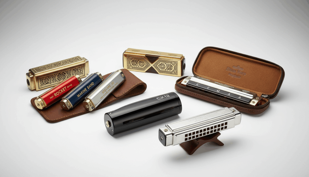 Tilbehør som FlexBelt og FlexCase gør det nemt at have flere harmonikaer ved hånden, mens Blues Harp ProPack og Unsere Lieblinge giver komplette sæt til begyndere og fortsatte spillere. Se udvalgte modeller hos Music2you.