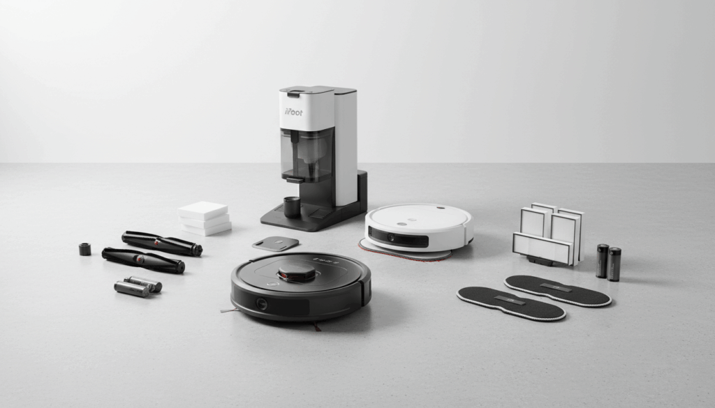 iRobot-kategorien samler robotstøvsugere og gulvvaskere fra Roomba og Braava, der gør rengøringen mere intelligent og uafhængig af menneskelig indsats. Sortimentet spænder fra små Roomba-600 og 700-serier til de kraftigste 800 og 900-serier samt nyere i- og S-serier med kortlægning, rumopdeling og app-styring. Braava-linjen udvider mulighederne med dedikerede gulvvaskere, der giver tør og våd rengøring. Tilbehør som filtre, sidebørster og batterier er også en del af udvalget. Typiske anvendelser omfatter daglig vedligeholdelse af boligen og fjernelse af kæledyrshår i hjørner og mellem møbler.