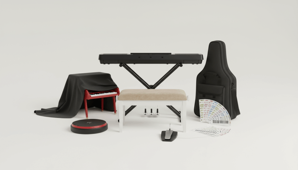 Keyboard Tilbehør dækker alt praktisk udstyr, der gør dit tangentinstrument mere funktionelt og komfortabelt: stativer og justerbare plade-systemer til opstilling, komfortable keyboardbænke, støvbeskyttende covers til beskyttelse mod støv, sustain-pedaler til nuancer og klistermærker til læring og identifikation af toner. Tasker og gigbags giver også sikker transport og opbevaring.