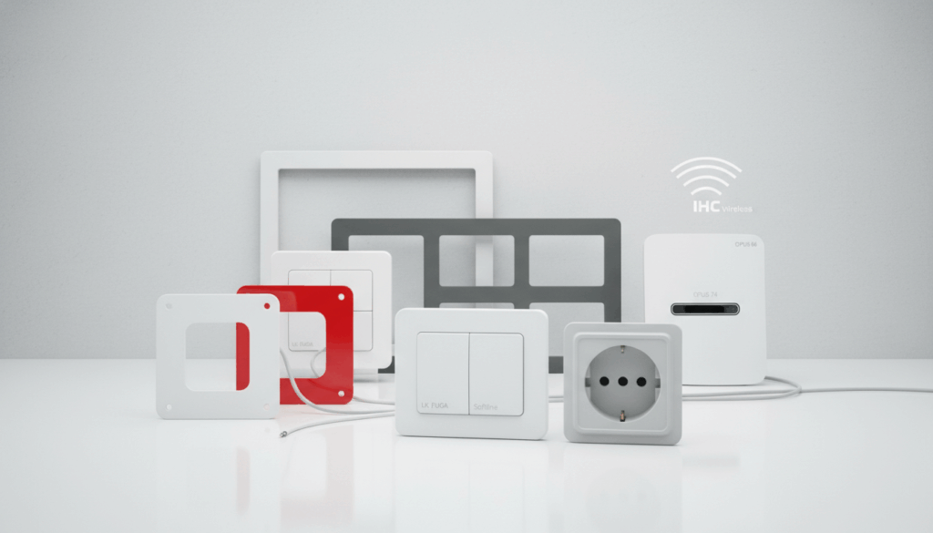 LK FUGA, OPUS og IHC-serierne dækker behov for planmontage og indmuringsløsninger med ramme-, dæksel- og underlagsmuligheder i Softline, Baseline og Pure. Udvalget inkluderer 1- og 2-moduls rammer, dæksel- og bagpladesæt samt panelunderlag, der passer til forskellige rammer. IHC Wireless og IHC Net giver trådløs betjening og netværk til smart home og professionel installation.
