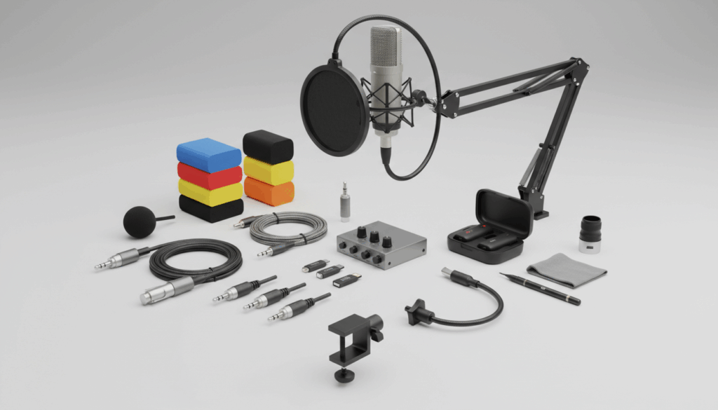 Når du vælger tilbehør, er det vigtigt at kende din mikrofontype og optagemiljø. Er det en kondensator- eller dynamisk mikrofon? Skal det være trådløst eller kablet? Ønsker du mulighed for kamera-tilslutning eller lydmix? I sortimentet findes varianter som små vindhætter til knaphulsmikrofoner og forskellige typer af stativer og klips. MAXiPRO og Disconetto hjælper dig med at opnå bedre lyd i feltet og studiet.