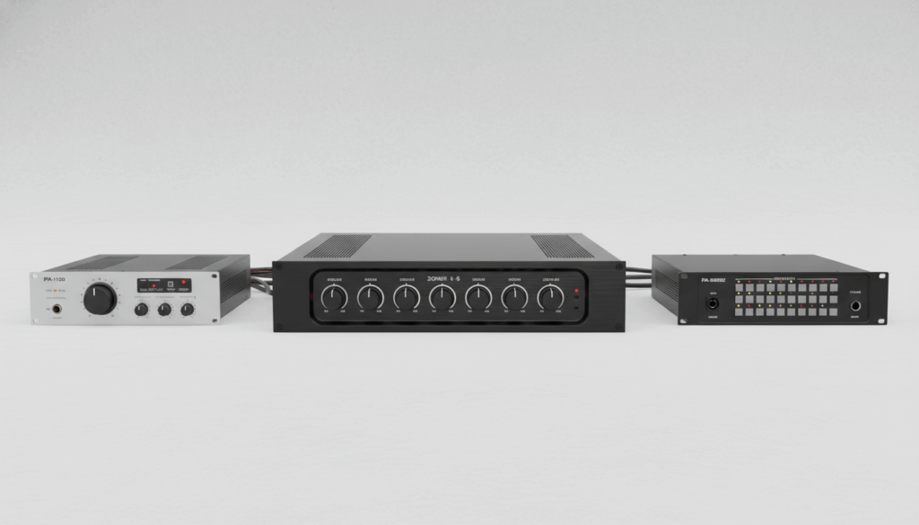 PA Forstærkere dækker kraftfulde lydsystemer, der kan styre musikken og talen i én eller flere zoner. Kategorien favner multi-zone forstærkere og 100V-udgaver, samt modeller med 4, 5, 6 eller 10 zoner og indbyggede talevarsling eller klokkelyd. Typiske produkter som PA-6020Z, PA-1120, PA-4240 og MONACOR-udgaver giver justerbar effekt, robuste konstruktioner og brugervenlige kontroller. De er velegnede til konferencer, events, detailmiljøer og offentlige rum, hvor lydniveau og rækkevidde skal tilpasses. Ved køb af forstærker overvej antal zoner, effekt (W RMS), indgange (mikrofon/linje), 100V eller 4 Ohm, dæmpning og særlige funktioner som klokke- eller alarmsignal.