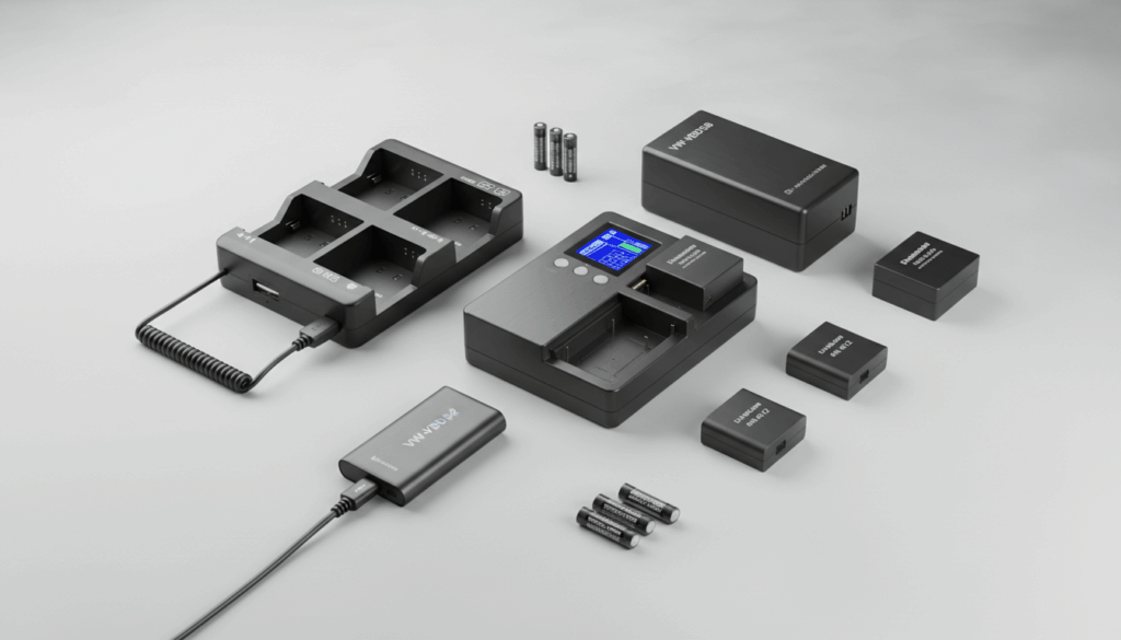 Tilbehørtyperne omfatter 4-i-1 opladere, Dual LCD USB-opladere og Slim micro-USB-modeller til udvalgte Panasonic-batterier som DMW-BLG10 og DMW-BLC12, hvilket giver fleksibel opladning i felten og under rejsen.