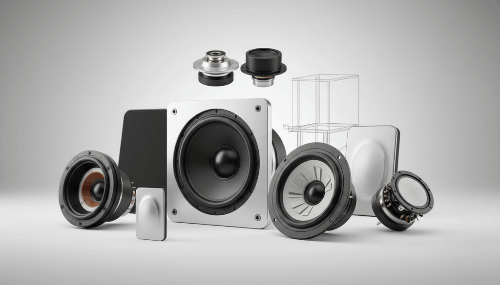 Udvalget omfatter også specialvarianter som Discovery, Revelator og Ellipticor, samt passive radiatorer og bas-/mellemtoneenheder i størrelser fra omkring 4 til 8 tommer. Overvej membranmaterialer og kabinetmateriale for ønsket lydkvalitet – nogle modeller giver mere detaljeret og åbent lydbillede, mens andre fokuserer på stærk bas og lav forvrængning.