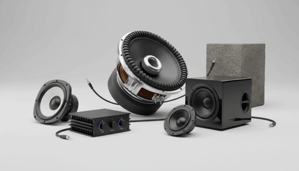 Subwoofer Enheder spænder fra små 8-tommer basenheder til store 18-tommer enheder og komplette systemer, ofte med eller uden integreret forstærker. Kategorien dækker hjemmebiograf, billyd, udendørs arrangementer og DIY-kit, der giver mulighed for skræddersyet basrespons og kraftfuld lyddesign.