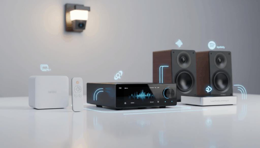 Udvalget spænder fra budgetvenlige streaming-sæt til hi-fi streamere som Volumio Primo 2, FiiO S15 og Elipson Stream S300 Xi. Der findes også WiiM Pro og andre multiroom-løsninger, der understøtter Spotify Connect, Tidal, AirPlay 2 og Chromecast og muligheden for at synkronisere lyd i flere rum.
